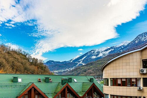 Чистый, уютный номер "комфорт" с окнами на 3 стороны, и из каждого окна видны горы! В номере есть всё необходимое для комфортного пребывания. На 4 этаже можно позагорать, а охладиться в бассейне на 1 этаже. Есть и баня, но в июле туда не хочется)